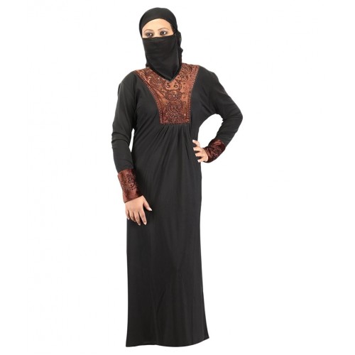 Hawai Black Rayon Stitched Burqas With Hijab