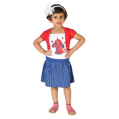 Lil Orchids Red Cotton Girls Printed Casual Dress