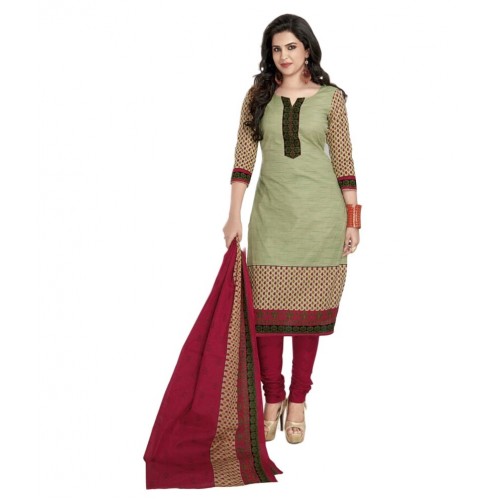 Shree Ganesh Green Cotton Straight Unstitched Dress Material