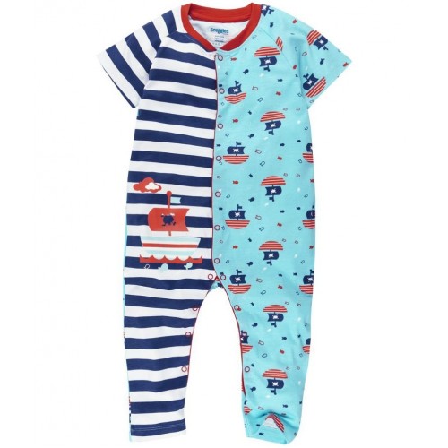 Snuggles Blue & White Printed Cotton Sleepsuit