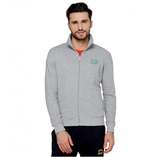 Proline Grey Solid Zippered Sweatshirt
