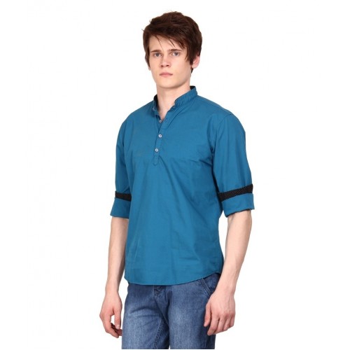 i-VOC Mens Royal Blue Short Cotton Kurta