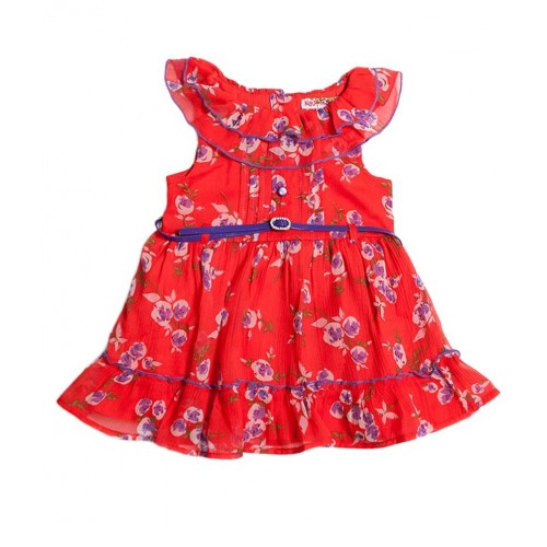 Nauti Nati Faux georgette Printed Red Dress For Kids